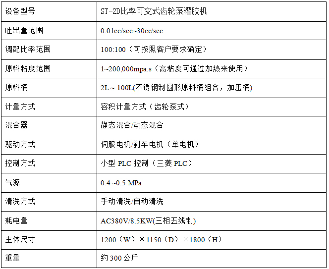 1、 該產品為比率可變式齒輪泵灌膠機,能夠實現連續吐出作業,可以滿足多種比率的吐出作業。